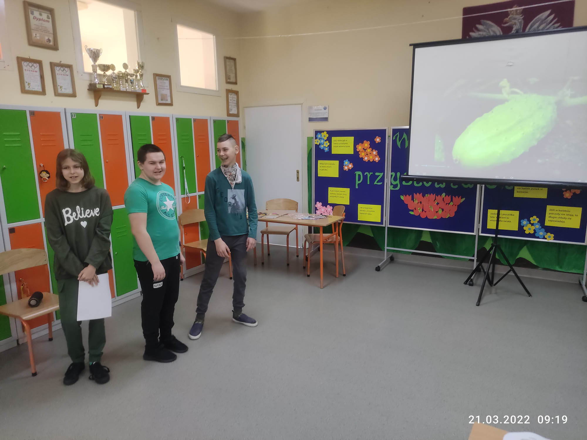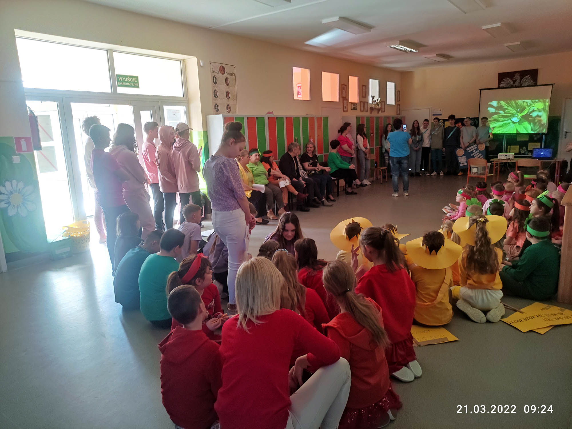 Obchody rozpoczęliśmy krótką prezentacją przygotowaną przez uczniów klasy VIII, z której dowiedzieliśmy się wiele ciekawostek na temat wiosny oraz poznaliśmy tradycje związane z obrzędem tego święta.