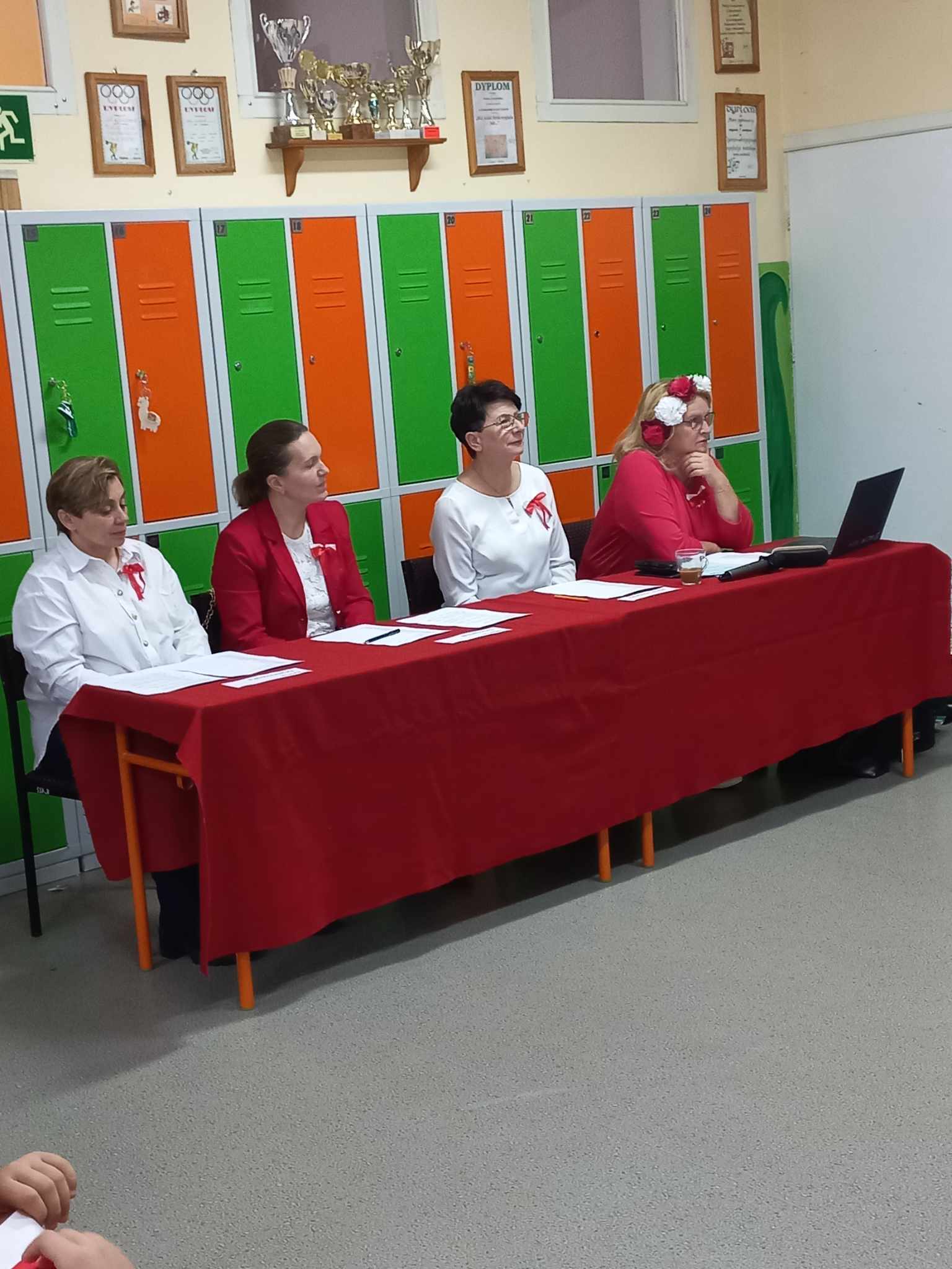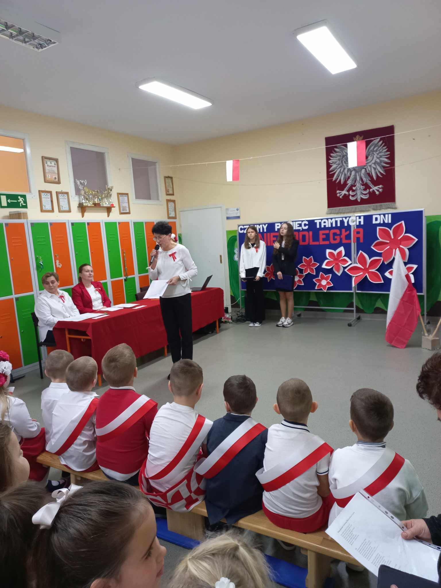 Wszyscy uczniowie odświętnie ubrani z symbolami patriotycznymi (kotyliony, opaski, szarfy) od rana zebrali się na szkolnym holu. Chętni uczniowie zaprezentowali przed komisją konkursową przygotowane pieśni patriotyczne. Komisja w składzie: p. Alina Liszewska- dyrektor szkoły, p. Anna Przybyłek- nauczyciel muzyki, p. Anna Malinowska- rodzic, p. Marta Szymaniak- rodzic, oceniła ich przygotowanie pod względem wizualnym, doboru piosenki i wykonania. Uczestnicy musieli zmierzyć się z trudnym repertuarem, ale i tak świetnie sobie poradzili.