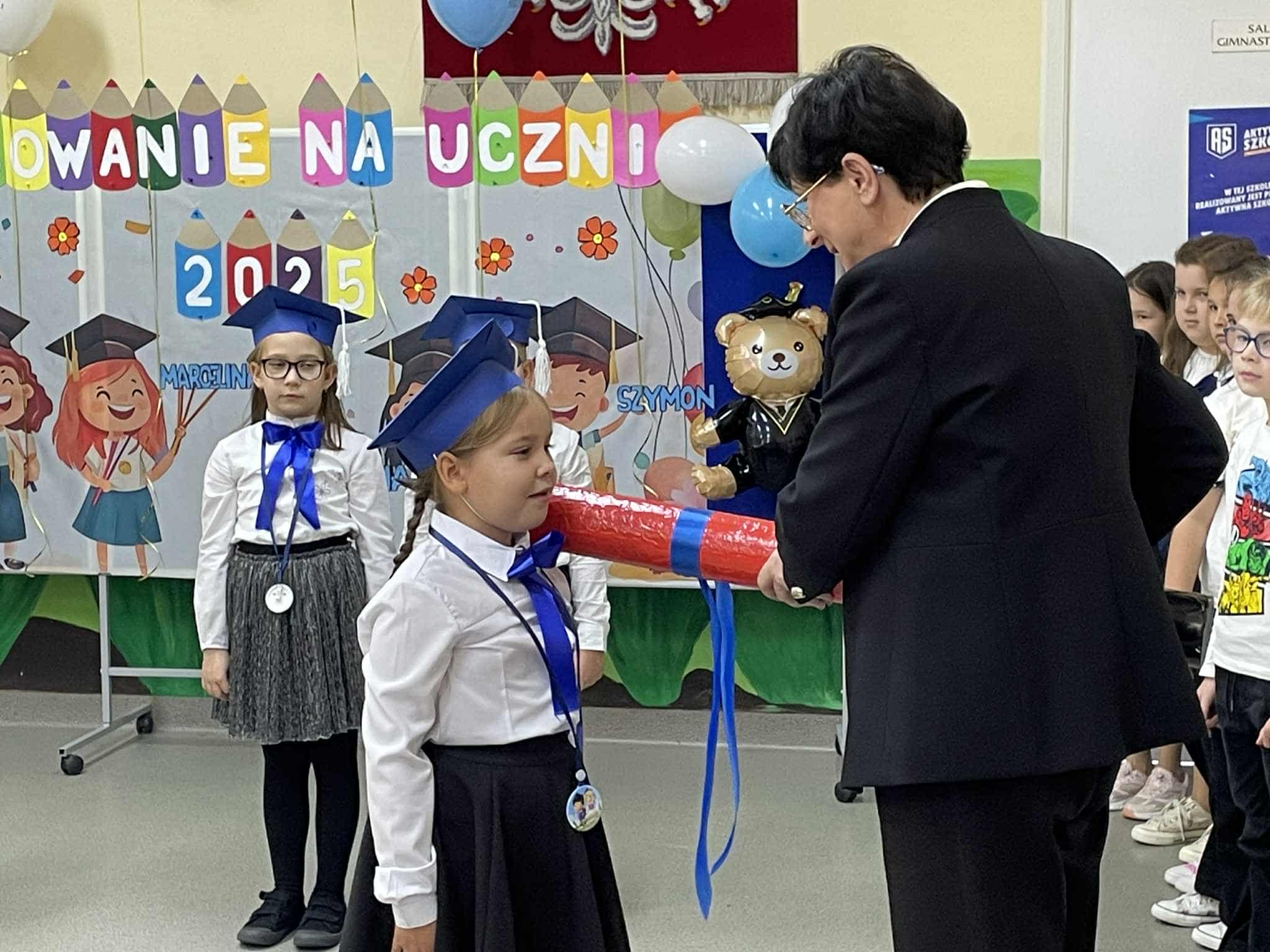 Każdy pierwszoklasista otrzymał pamiątkowy medal oraz drobny upominek. Wzruszeni rodzice z dumą obserwowali, jak ich pociechy rozpoczynają nowy, ważny etap szkolnej przygody.