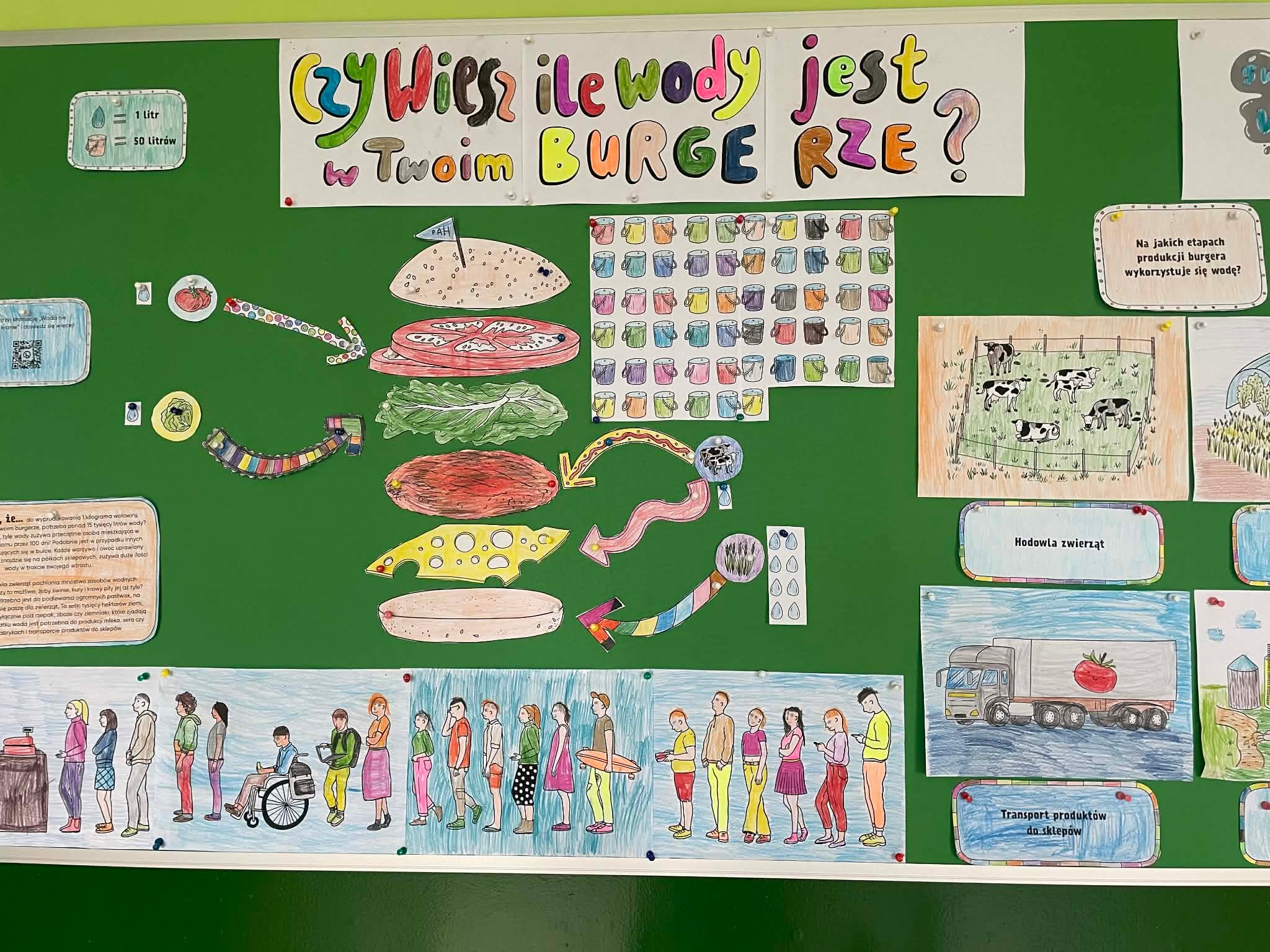 Klasa I – gazetka ścienna „Ile wody jest w hamburgerze?”-wych. Magdalena Kawczyńska