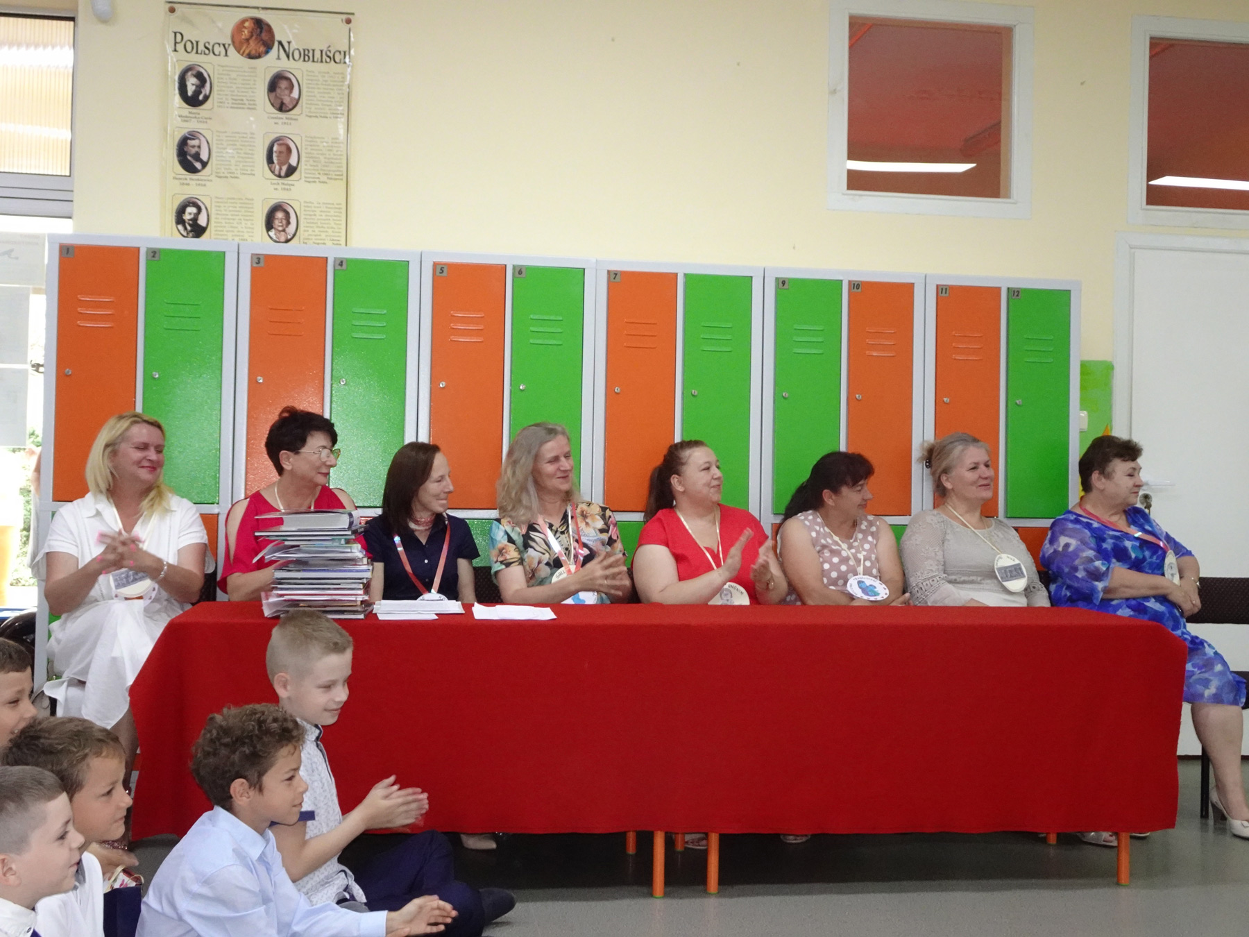 Ósmoklasiści w swoim ostatnim już wystąpieniu w naszej szkole uhonorowali wszystkich nauczycieli medalami zasług. Przygotowali również zabawne scenki obrazujące ich życie w szkolnych murach. Następnie głos zabrali siódmoklasiści żegnając swoich starszych kolegów. Na zakończenie ósmoklasiści podziękowali Pani Dyrektor, wszystkim nauczycielom, a w szczególności wychowawczyni Pani Beacie Słomczewskiej za trud włożony w ich wychowanie, nie obyło się bez łez wzruszenia.
