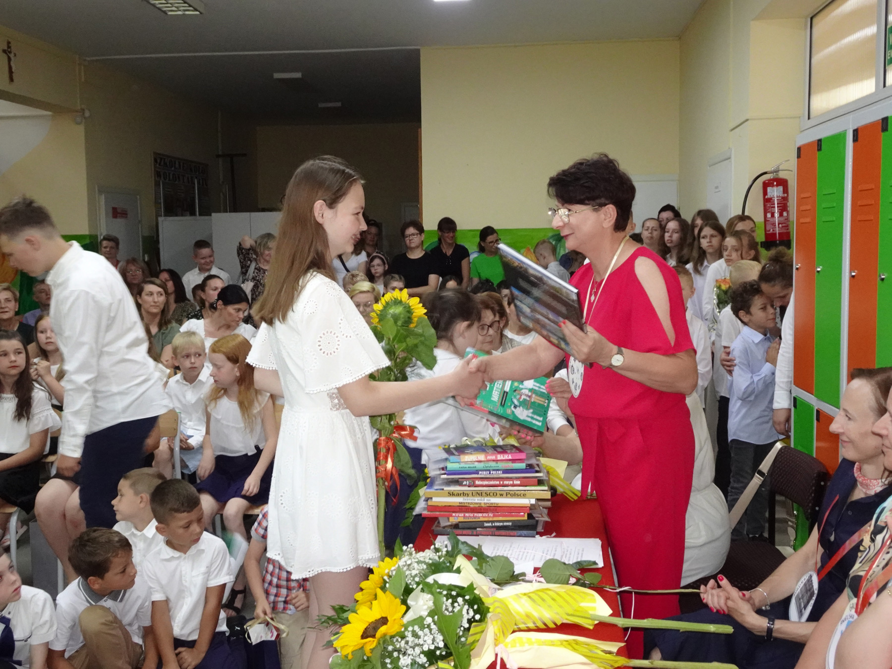 Następnie Pani Dyrektor podsumowała kończący się rok szkolny, a wszystkim wyróżniającym się nauką i zachowaniem uczniom wręczyła nagrody książkowe.