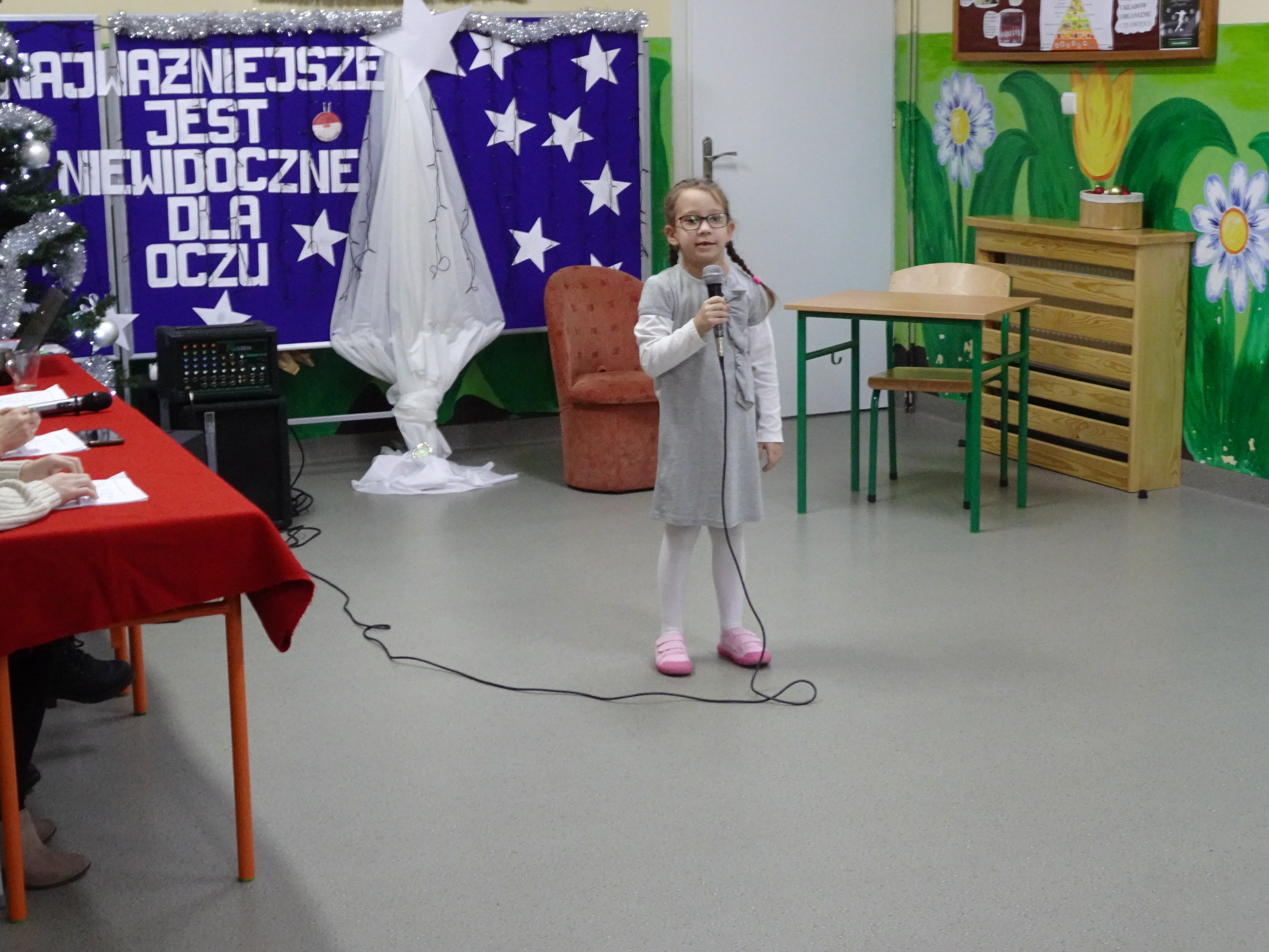 Uczestników konkursu oceniało jury w składzie: p. Alina Liszewska- dyrektor szkoły, p. Anna Przybyłek- nauczyciel muzyki, p. Iwona Fijałkowska- rodzic, p. Grażyna Włodarska- rodzic.