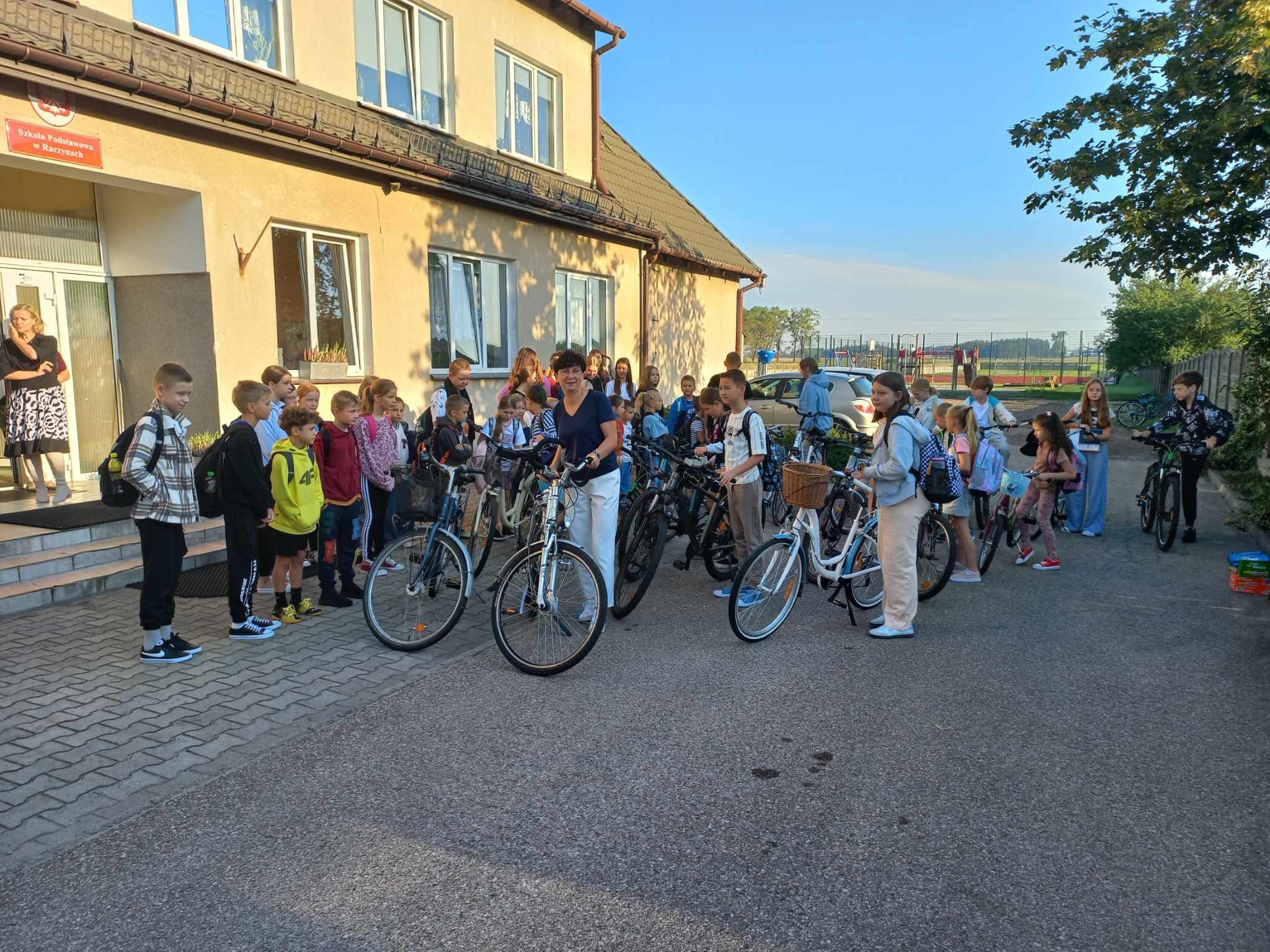 18 września uczniowie, nauczyciele oraz pracownicy szkoły włączyli się w gminny projekt- Europejski Tydzień Mobilności i do szkoły, i pracy przyjechali rowerami, za co zostali nagrodzeni przez Panią Dyrektor słodkim upominkiem.